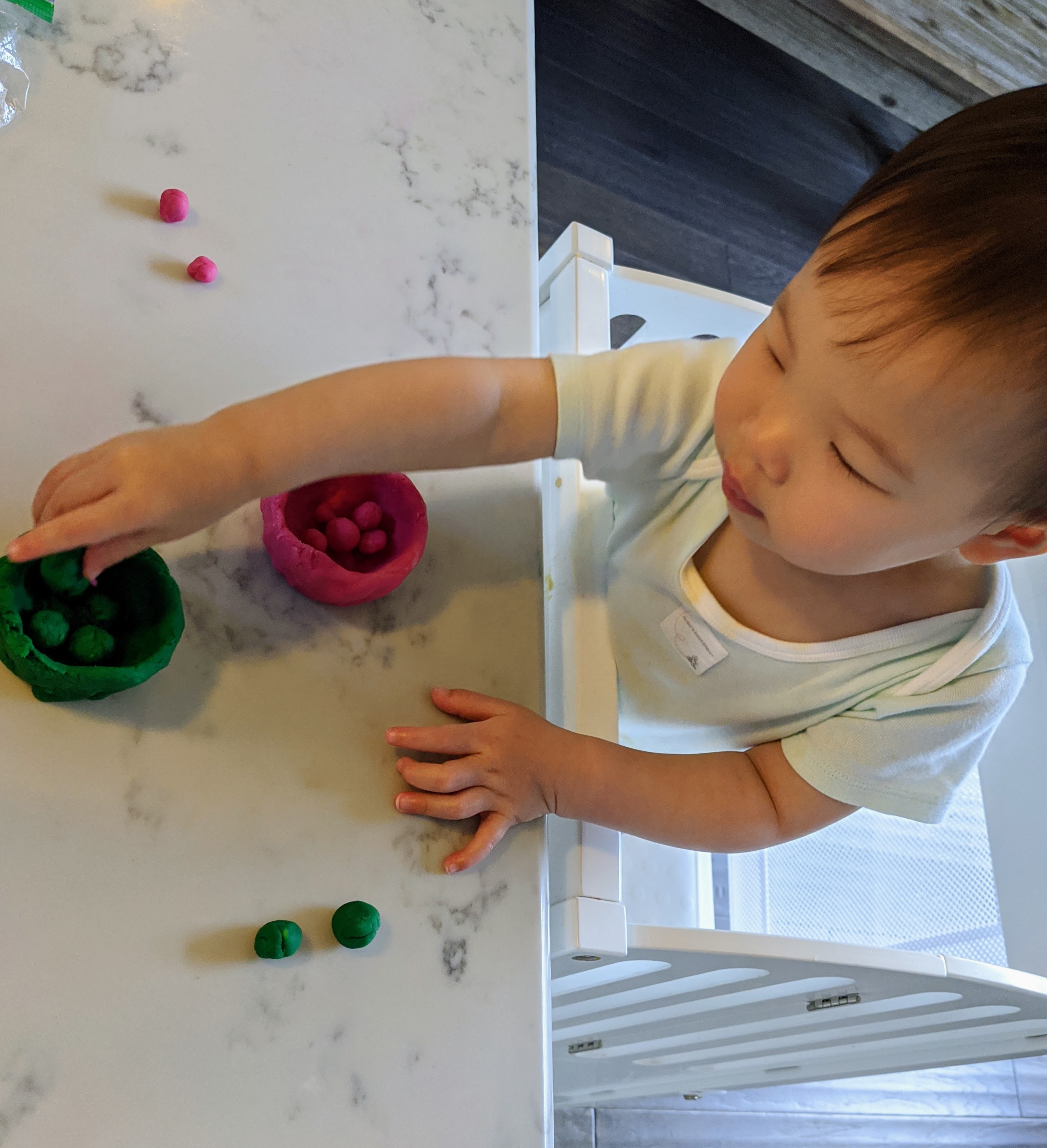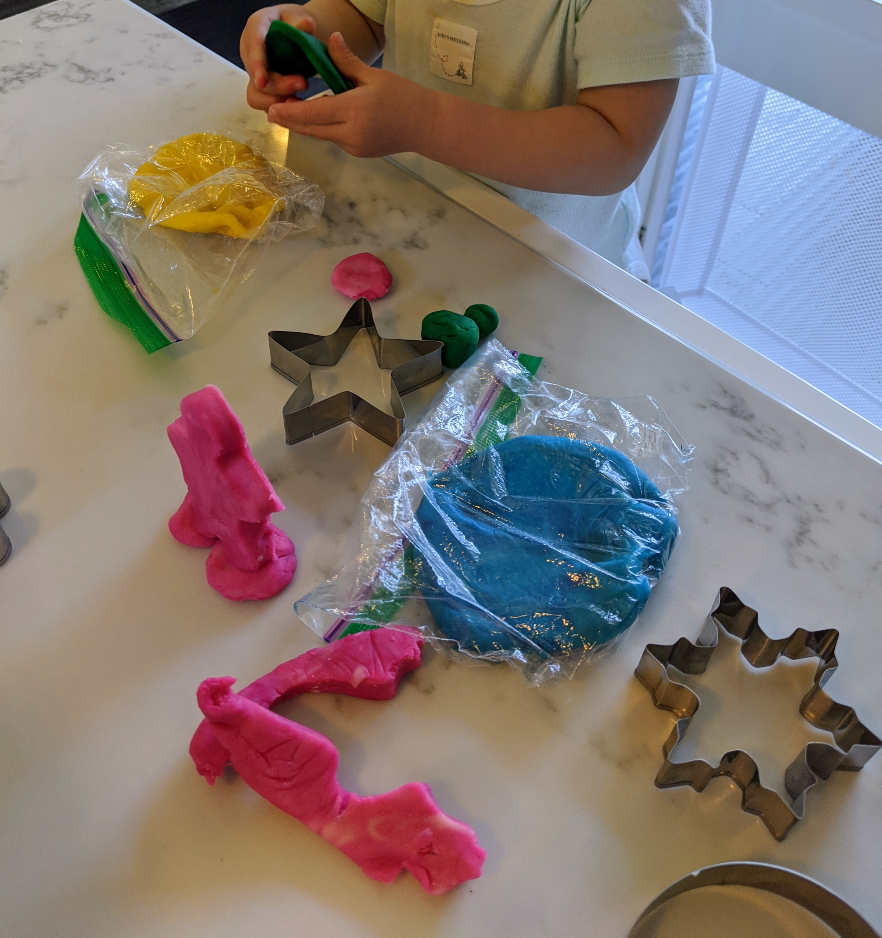 上週我參考鄰居Aileen給我的一個自製橡皮泥的方法,和Therese一起完成了簡單好玩又安全(完全是食材製作)的橡皮泥。